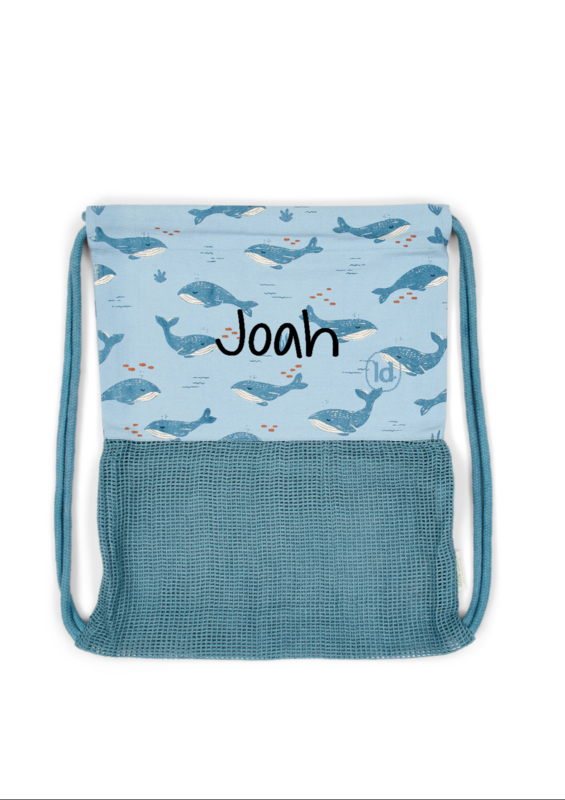 De frisse blauwe Ocean World print geeft de tas een rustige en zomerse uitstraling. Extra leuk: de tas kan gepersonaliseerd worden met een naam, wat hem extra bijzonder maakt – ook perfect als cadeau!