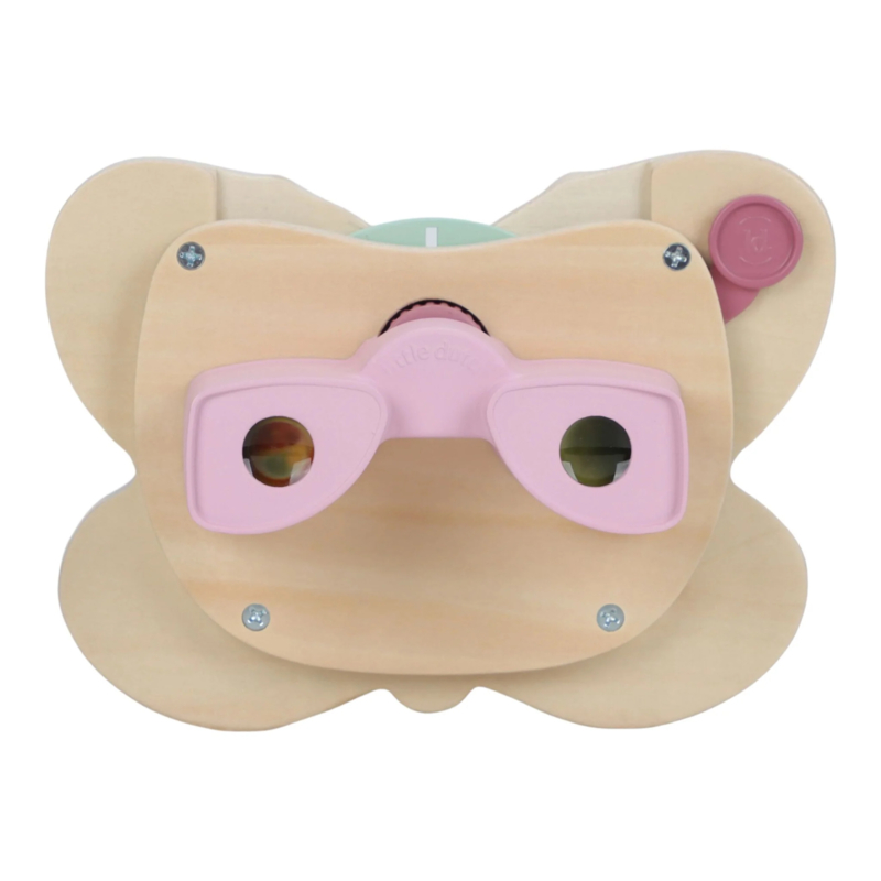 Dankzij het stevige ontwerp van hout en kunststof is de verhalenkijker ideaal voor kleine handjes. De zachte kleuren en het lieve vlinderontwerp zorgen voor een speelse en dromerige uitstraling, waardoor elk kijkmoment bijzonder wordt.